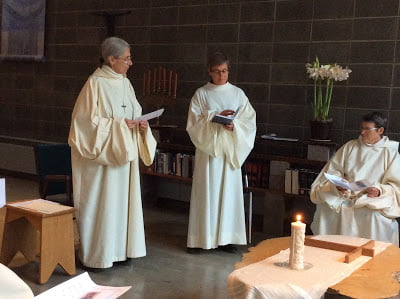 Gertrude, you shared with me a text from Br. Christophe’s journal that was especially speaking to you during your retreat. The context of Christophe’s words is that the brothers were gathered at chapter in the evening and discussing an appeal from the bishops to form small groups in times of trial, and Christophe poses the question ‘Who is available’? (Born From the Gaze of God, p.116). Then his prayer reflection turns deep into these words: “I re-read Ruth’s promise to Naomi, and I would love to be able to live it in truth, in poverty: ‘Wherever you go, I will go. Wherever you live, I will live. Your people shall be my people, and your God, my God’. To follow God: here” (p.116). These words are powerful and very direct. They express a commitment, they could well be part of a profession formula! They are total in their offering: ‘Wherever you go I will go….wherever you live I will live…to follow God here…Gertrude, it is my sense that you are ready and willing to make this offering today as you respond to the flow of grace calling you!