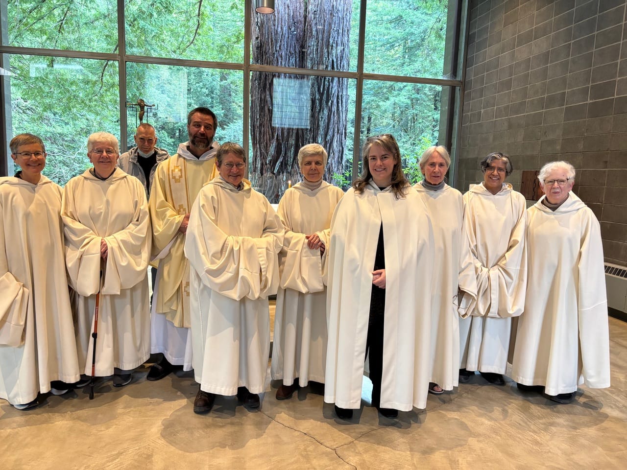 On January 7, 2025, with a stomach full of butterflies and a photo of my cat in my pocket, I entered the community as a postulant. This happy and momentous day arrived 13 years after my initial visit to Redwoods. In the fall of 2012, during my first year in the Master of Divinity program at the Jesuit School of Theology of Santa Clara University, two friends and I made the journey north for a Monastic Experience Weekend. As an only child from northern Indiana, I remember feeling absolutely giddy at the thought of a weekend of silence, stillness and lush wilderness after my first few months adjusting to living in an intentional community in the Bay Area. While delighting in the luxury of reading a novel under a canopy of redwoods, I had no idea that these days of respite were actually laying the groundwork for a new path of vocational discernment.